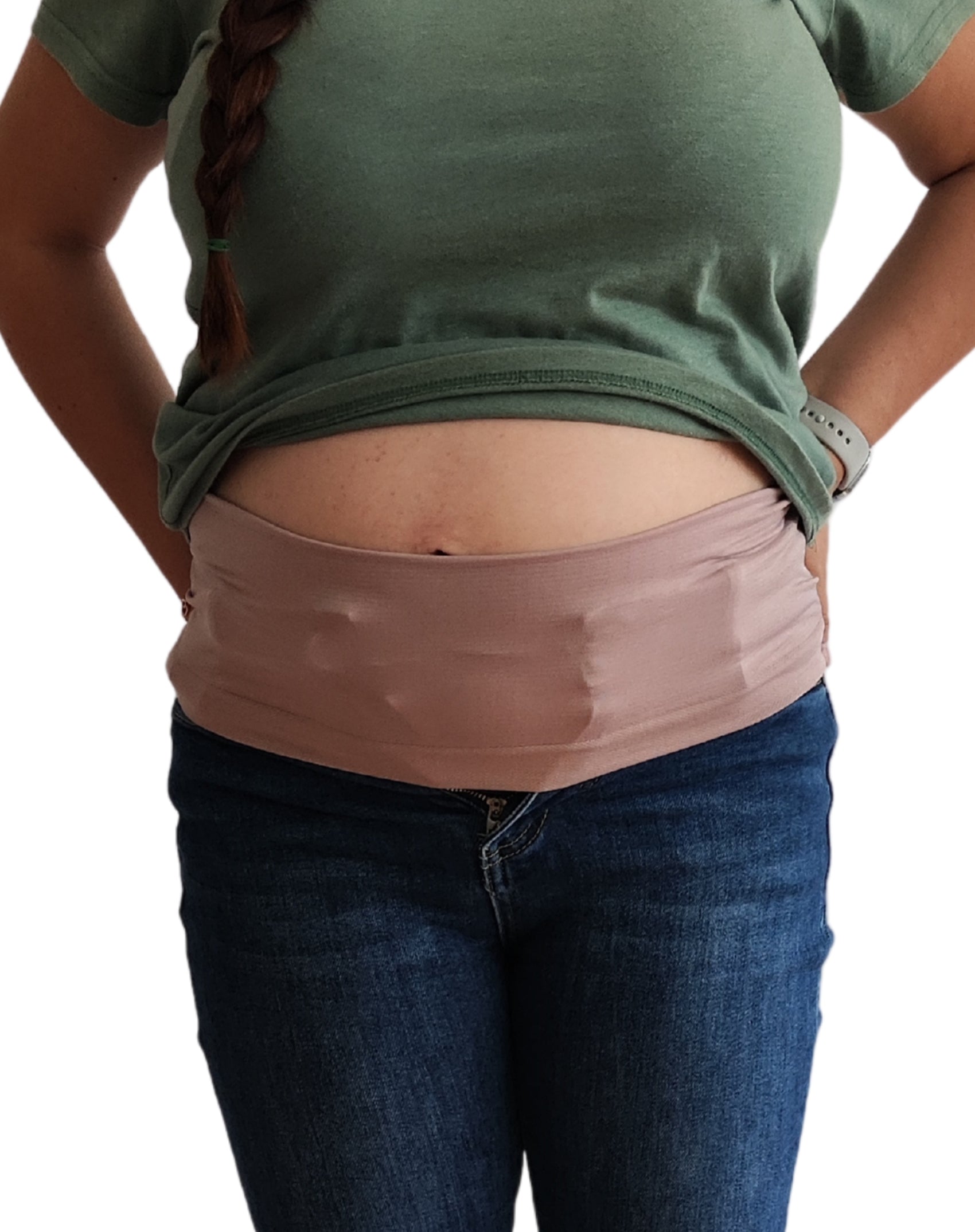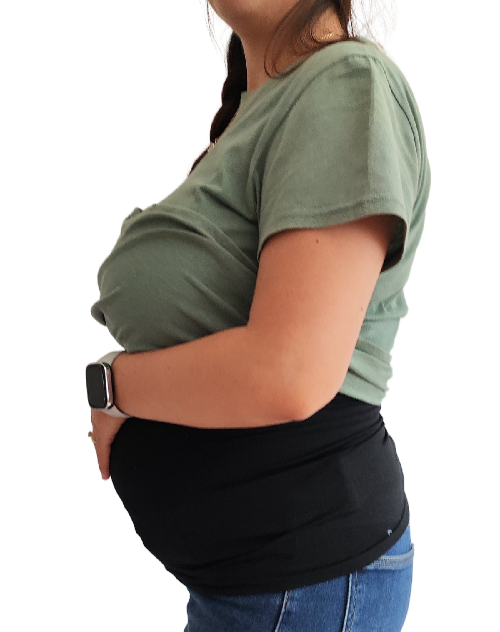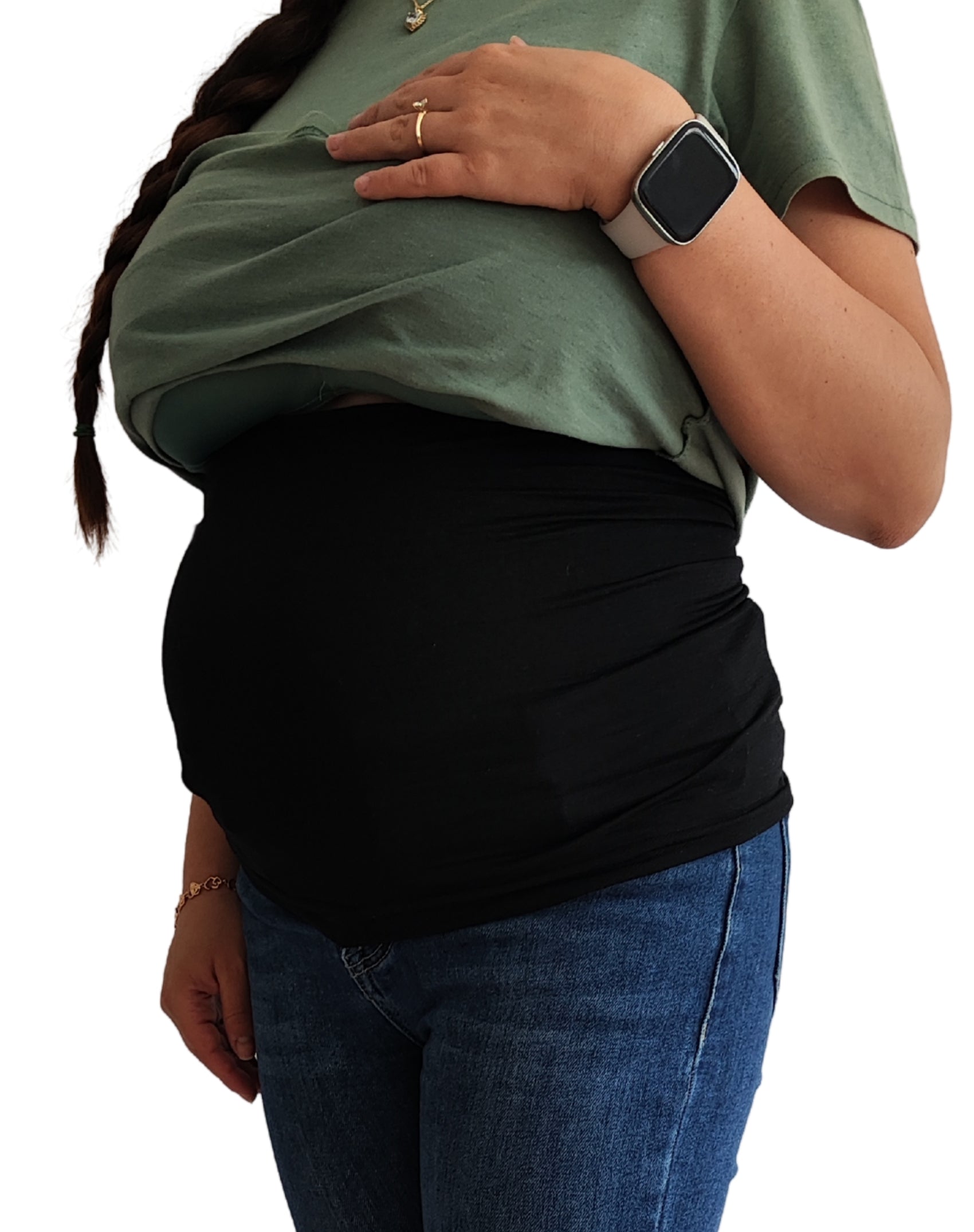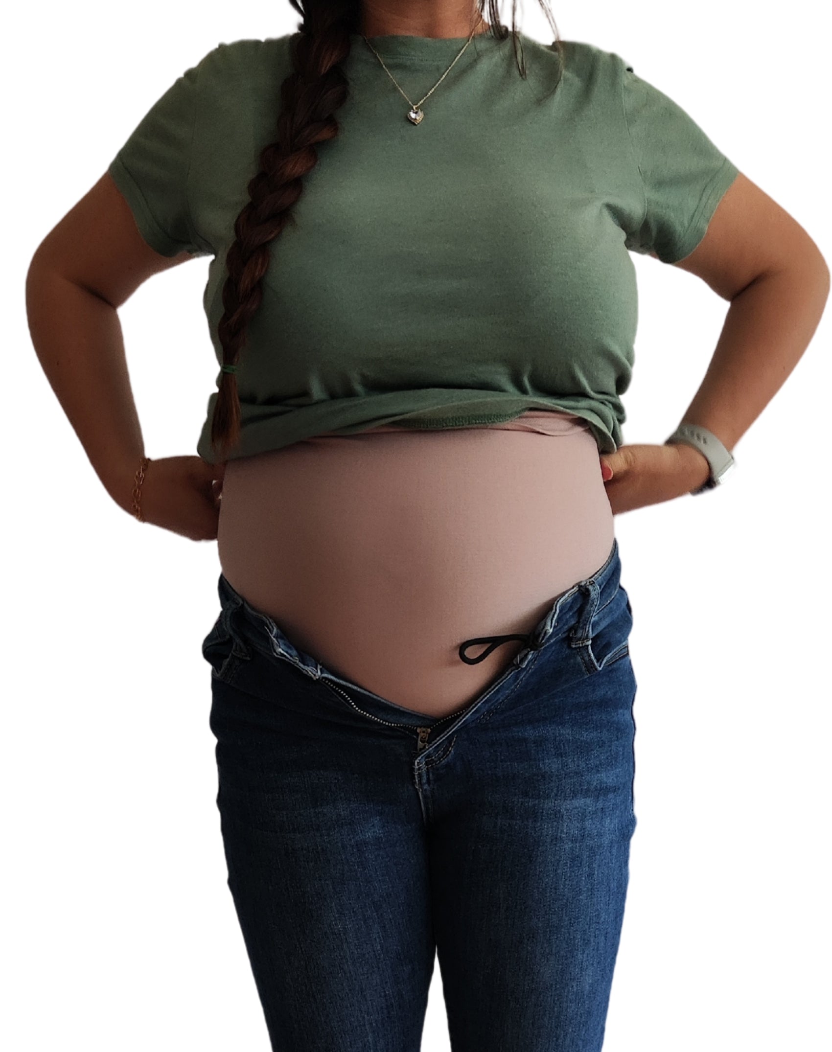 Utiliza esta banda para mantener tus pantalones abiertos con facilidad durante tu embarazo. Asegura comodidad y movilidad sin comprometer tu estilo.